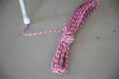 A 4' long handle made of galvanized metal is sandwiched at one end between the two T-Head 'teeth' plates. With a 25' rope connected to the other end of the handle, going into the end of the tool to ensure no weeds get tangled, you can use this rake to get a clean lakeshore with ease.