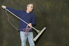 The T-Weeder Tool is a unique weeding tool consisting of a 4' long handle with a 3' wide head connected to the end, forming a "T" shape. To effectively and efficiently remove weeds from your lakeshore, the T-Weeder head has two 3' plates of solid aluminum, each ¼" thick, firmly attached to the handle and spaced 1" apart.